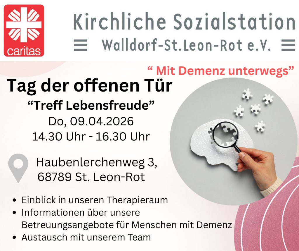 Ort: Kirchliche Sozialstation Walldorf – St. Leon-Rot e.V., Haubenlerchenweg 3, 68789 St. Leon-Rot