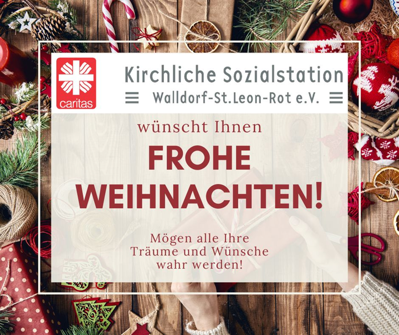 Die Kirchliche Sozialstation Walldorf–St. Leon-Rot e. V. wünscht allen eine besinnliche Weihnachtszeit, erholsame Feiertage und einen erfolgreichen Start in das Jahr 2026 – weiterhin geprägt von Teamgeist, Engagement und Freude am Miteinander.