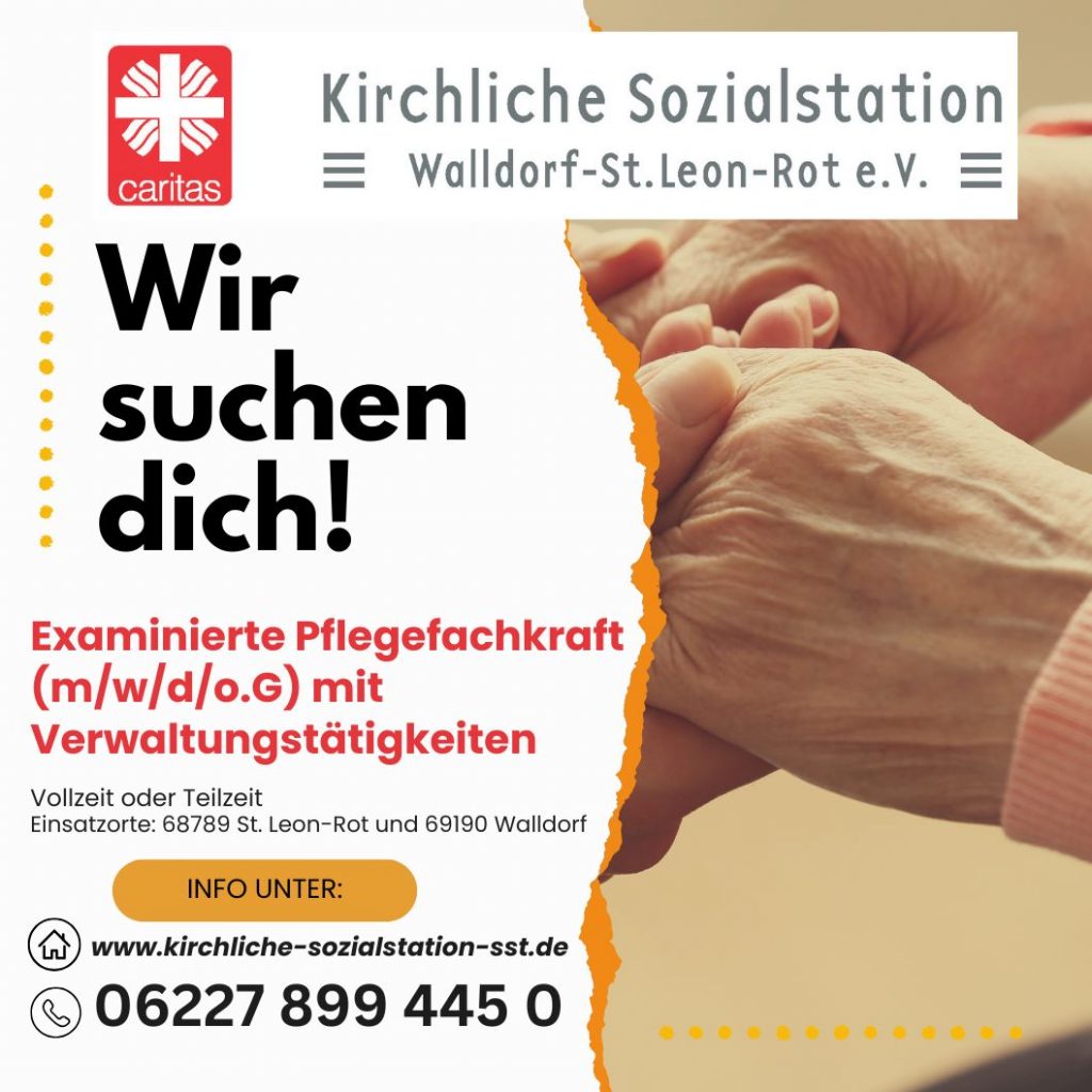 Wir sind ein innovativer ambulanter Pflegedienst unter dem Dach des Caritasverbandes. Unser Einzugsgebiet umfasst die Stadt Walldorf sowie die Gemeinde St. Leon-Rot. Mit unserer langjährigen Erfahrung in der ambulanten Pflege ermöglichen wir unseren Klienten ein hohes Maß an Selbstständigkeit. In Kooperation mit regionalen Schulen und unterstützt vom Rhein-Neckar-Kreis bieten wir dir eine erstklassige Ausbildung.